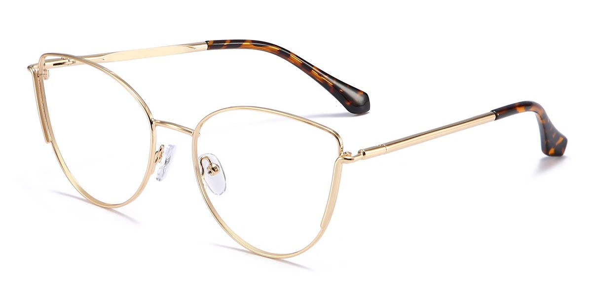 Classic gold metal frame of this Eliza glasses is always there for you. The cat eye shaped frame looks chic and stylish with the gold metal. The tortoiseshell print on the temple arms makes the glasses more dazzling and attractive.