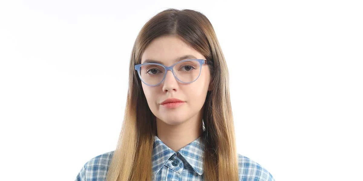 Blue Lindsay has azure blue on its rims. On the temples, the 2-tone design provide a stylish and trendy look with a distinctive style. Besides, the glasses frames are lightweight, only having 21.6g. We assure 100% secure checkout when you order these glasses from us.